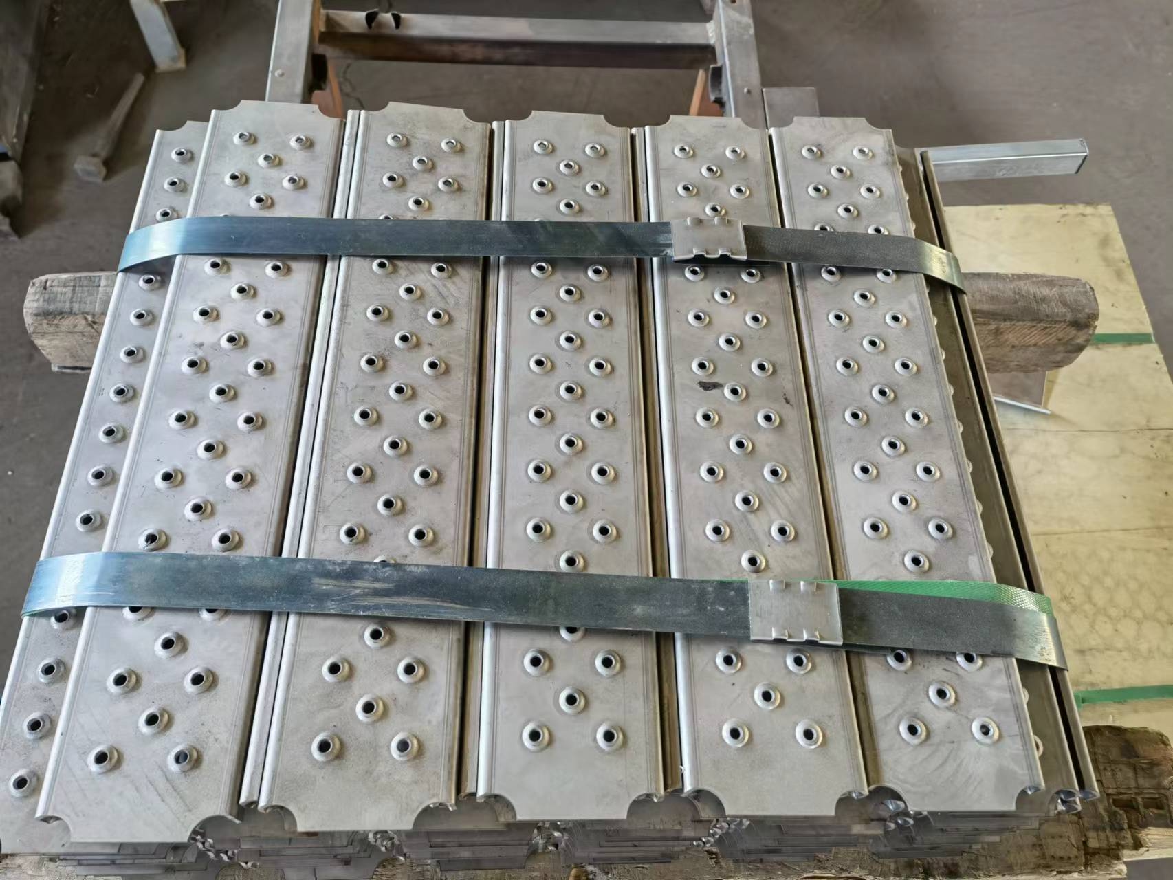 鱷魚嘴防滑板是用金屬板材在數控沖床上面裝置鱷魚嘴型的模具往后通過沖壓制作而成的一種防滑板,是沖孔板加工產品中的一種,其外觀款式有單面凸起型和雙面凸起型兩種款式。
